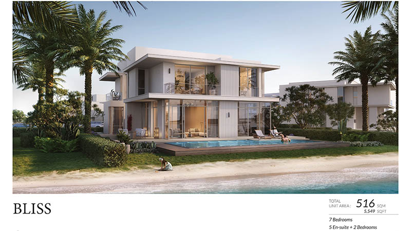 The waterfront villas will feature 3 to 7 bedrooms and will include a private beach of their own, providing breathtaking views of the sea.